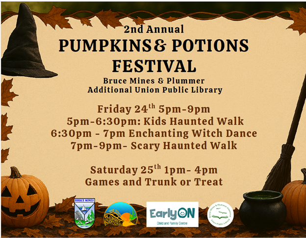 Presented by the Town of Bruce Mines and Plummer Additional Township, BMPA Library, Central Algoma EarlyON & the Bruce Mines Witches and Warlocks